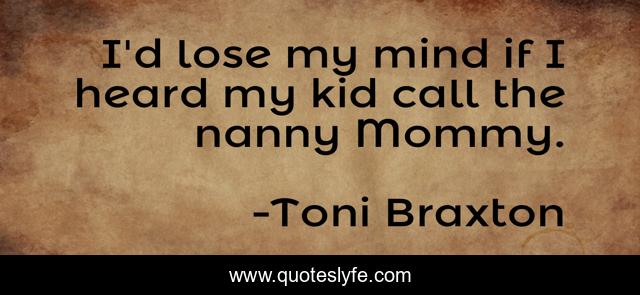 This page presents the quote "I'd lose my mind if I heard my kid call the nanny Mommy.". Author of this quote is Toni Braxton. This quote is about kid, mind, lose,.