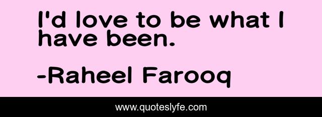 "Raheel Farooq Quotes." Quoteslyfe.com, 2025. Mon. 08 Dec. 2025. <https://www.quoteslyfe.com/quote/I-d-love-to-be-what-I-142955>.