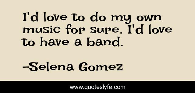 This page presents the quote "I'd love to do my own music for sure. I'd love to have a band.". Author of this quote is Selena Gomez. This quote is about band, my own, affection, love,.