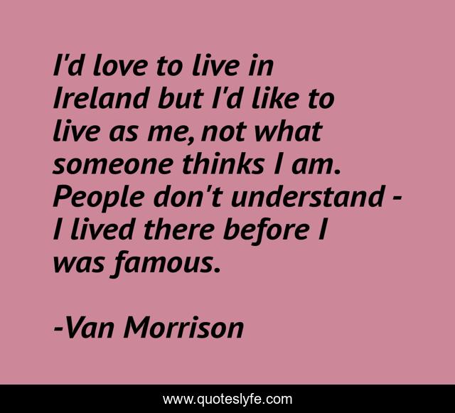 This page presents the quote "I'd love to live in Ireland but I'd like to live as me, not what someone thinks I am. People don't understand - I lived there before I was famous.". Author of this quote is Van Morrison. This quote is about me, love, affection,.