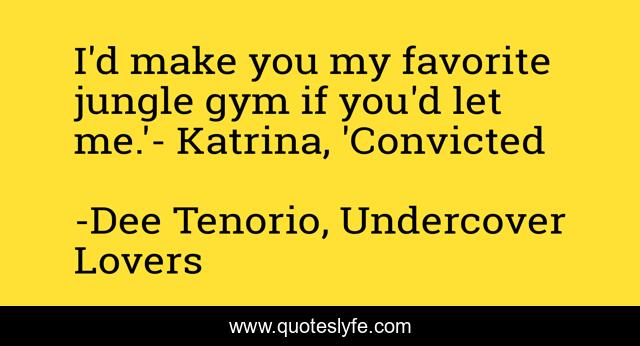 This page presents the quote "I'd make you my favorite jungle gym if you'd let me.'- Katrina, 'Convicted". Author of this quote is Dee Tenorio, Undercover Lovers. .