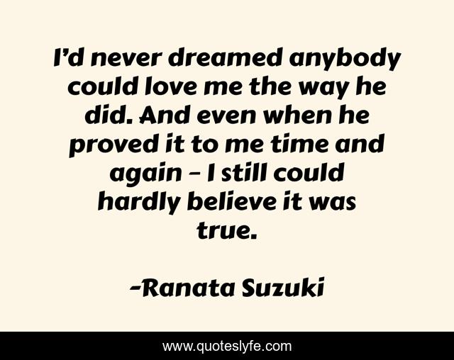 "Ranata Suzuki Quotes." Quoteslyfe.com, 2025. Tue. 09 Dec. 2025. <https://www.quoteslyfe.com/quote/I-d-never-dreamed-anybody-could-love-22419>.