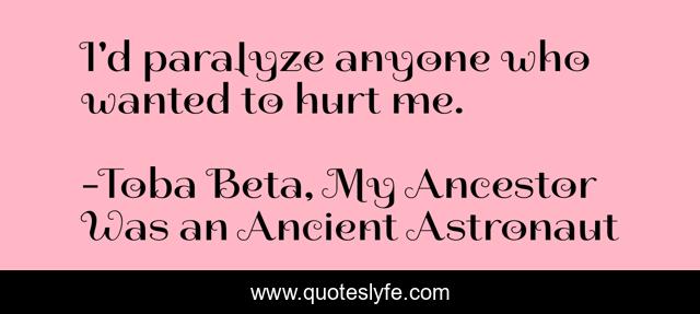 "Toba Beta, My Ancestor Was an Ancient Astronaut Quotes." Quoteslyfe.com, 2025. Mon. 08 Dec. 2025. <https://www.quoteslyfe.com/quote/I-d-paralyze-anyone-who-wanted-to-178893>.
