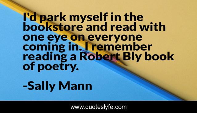 This page presents the quote "I'd park myself in the bookstore and read with one eye on everyone coming in. I remember reading a Robert Bly book of poetry.". Author of this quote is Sally Mann. This quote is about myself, reading, book,.