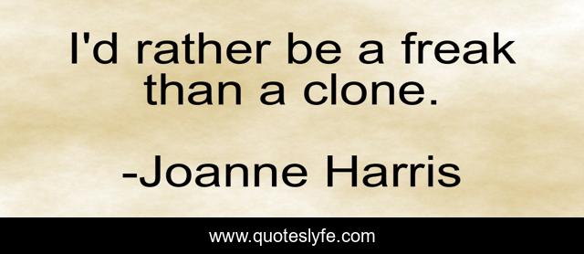 This page presents the quote "I'd rather be a freak than a clone.". Author of this quote is Joanne Harris. .