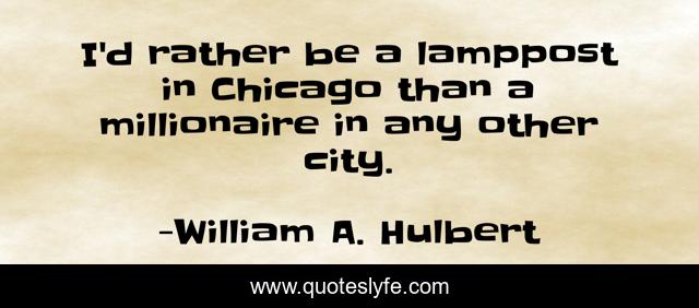 This page presents the quote "I'd rather be a lamppost in Chicago than a millionaire in any other city.". Author of this quote is William A. Hulbert. .