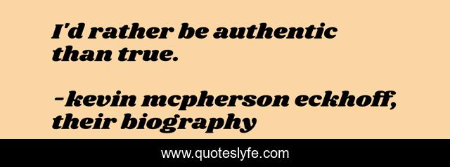 "kevin mcpherson eckhoff, their biography Quotes." Quoteslyfe.com, 2025. Fri. 05 Dec. 2025. <https://www.quoteslyfe.com/quote/I-d-rather-be-authentic-than-true-141662>.