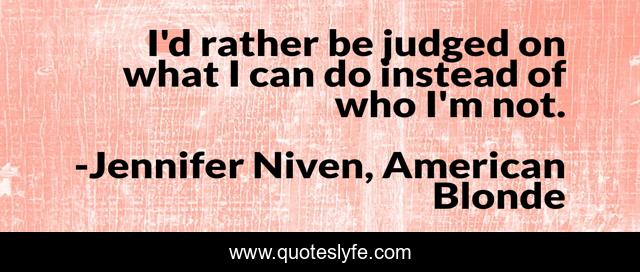This page presents the quote "I'd rather be judged on what I can do instead of who I'm not.". Author of this quote is Jennifer Niven, American Blonde. This quote is about judgement, abilities, perception, judging,.