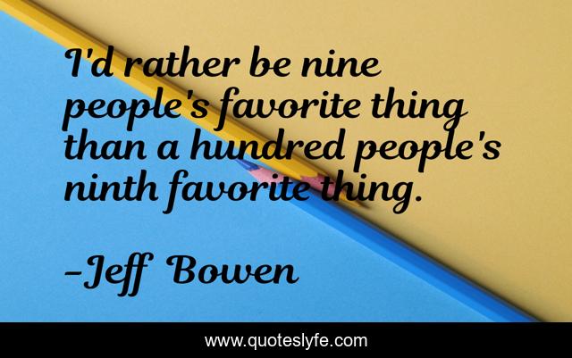 This page presents the quote "I'd rather be nine people's favorite thing than a hundred people's ninth favorite thing.". Author of this quote is Jeff Bowen. This quote is about playwriting, songwriting, title-of-show, creativity, writing,.