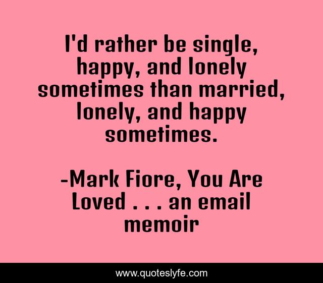 "Mark Fiore, You Are Loved . . . an email memoir Quotes." Quoteslyfe.com, 2025. Fri. 05 Dec. 2025. <https://www.quoteslyfe.com/quote/I-d-rather-be-single-happy-and-43998>.