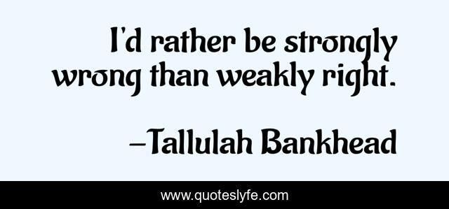 This page presents the quote "I'd rather be strongly wrong than weakly right.". Author of this quote is Tallulah Bankhead. This quote is about wrong, right,.