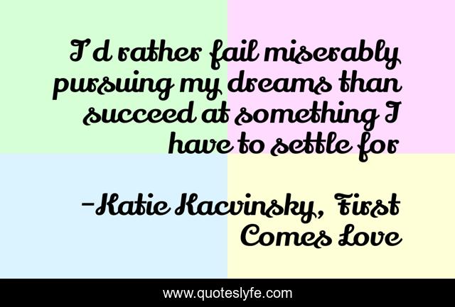 This page presents the quote "I’d rather fail miserably pursuing my dreams than succeed at something I have to settle for". Author of this quote is Katie Kacvinsky, First Comes Love. .