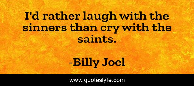 This page presents the quote "I'd rather laugh with the sinners than cry with the saints.". Author of this quote is Billy Joel. This quote is about laughter, sadness, saints, sin, virtue,.