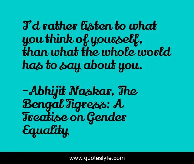 "Abhijit Naskar, The Bengal Tigress: A Treatise on Gender Equality Quotes." Quoteslyfe.com, 2025. Fri. 05 Dec. 2025. <https://www.quoteslyfe.com/quote/I-d-rather-listen-to-what-you-32809>.
