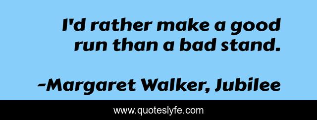 This page presents the quote "I'd rather make a good run than a bad stand.". Author of this quote is Margaret Walker, Jubilee. This quote is about enthusiasm, historical-fiction, inspirational,.
