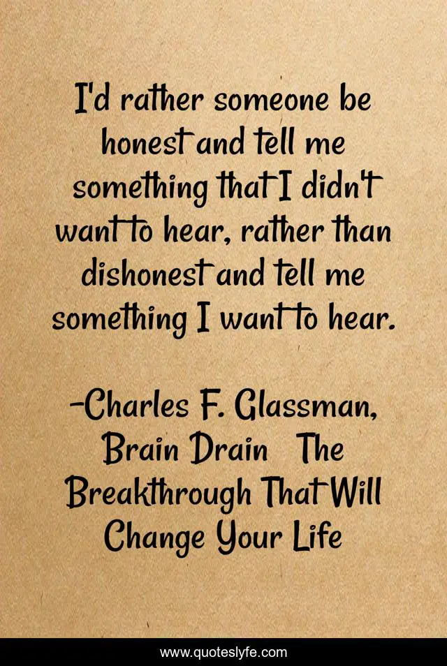 "Charles F. Glassman, Brain Drain The Breakthrough That Will Change Your Life Quotes." Quoteslyfe.com, 2025. Sun. 07 Dec. 2025. <https://www.quoteslyfe.com/quote/I-d-rather-someone-be-honest-and-167508>.