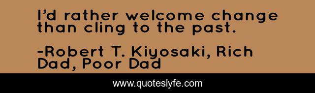 This page presents the quote "I’d rather welcome change than cling to the past.". Author of this quote is Robert T. Kiyosaki, Rich Dad, Poor Dad. This quote is about enthusiasm, inspirational,.