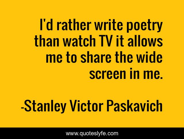 This page presents the quote "I'd rather write poetry than watch TV it allows me to share the wide screen in me.". Author of this quote is Stanley Victor Paskavich. .