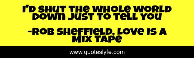 This page presents the quote "I'd shut the whole world down just to tell you". Author of this quote is Rob Sheffield, Love Is a Mix Tape. This quote is about love, affection,.