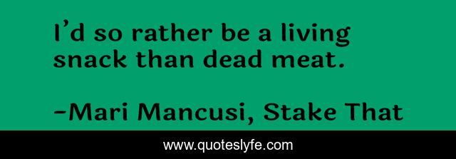 This page presents the quote "I’d so rather be a living snack than dead meat.". Author of this quote is Mari Mancusi, Stake That. This quote is about vampires, paranormal-ya-romance,.