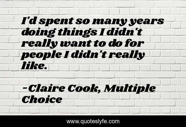 "Claire Cook, Multiple Choice Quotes." Quoteslyfe.com, 2025. Sat. 06 Dec. 2025. <https://www.quoteslyfe.com/quote/I-d-spent-so-many-years-doing-243148>.