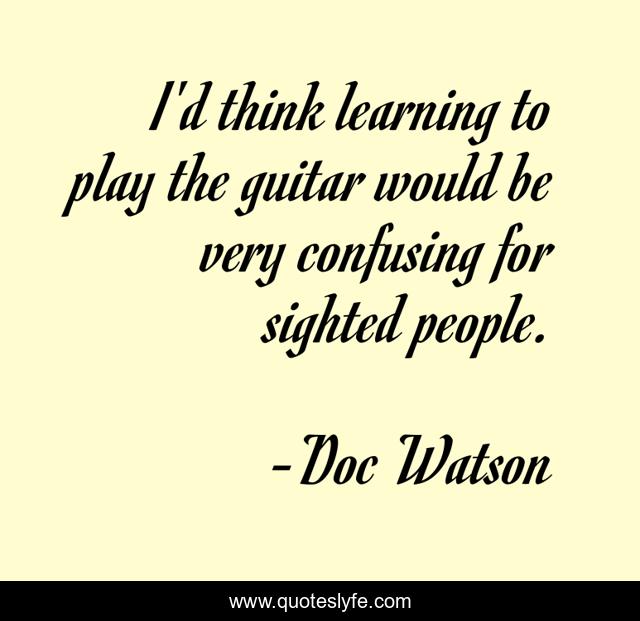 This page presents the quote "I'd think learning to play the guitar would be very confusing for sighted people.". Author of this quote is Doc Watson. This quote is about guitar, think, people,.