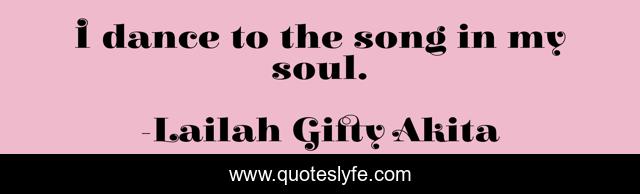 This page presents the quote "I dance to the song in my soul.". Author of this quote is Lailah Gifty Akita. This quote is about dance, lailah-gifty-akita-affirmations, soul, song,.