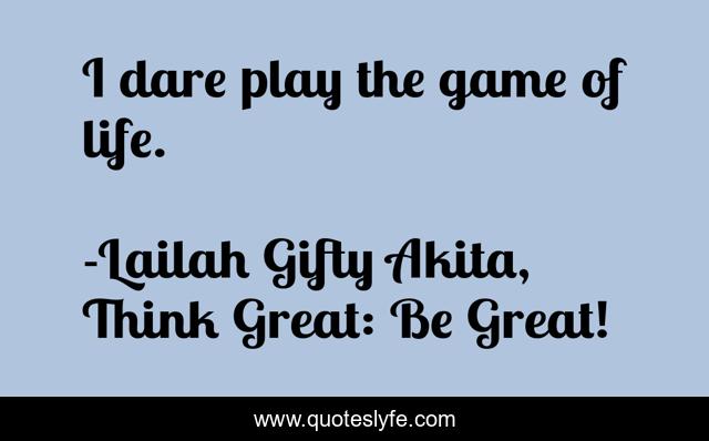 "Lailah Gifty Akita, Think Great: Be Great! Quotes." Quoteslyfe.com, 2025. Sun. 07 Dec. 2025. <https://www.quoteslyfe.com/quote/I-dare-play-the-game-of-life-91772>.