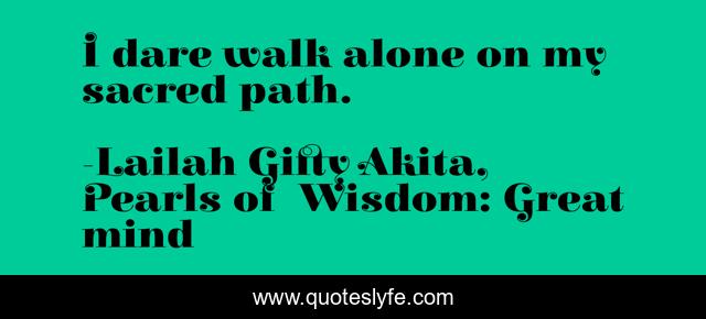 "Lailah Gifty Akita, Pearls of Wisdom: Great mind Quotes." Quoteslyfe.com, 2025. Fri. 05 Dec. 2025. <https://www.quoteslyfe.com/quote/I-dare-walk-alone-on-my-sacred-137185>.
