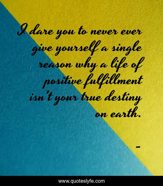 This page presents the quote "I dare you to never ever give yourself a single reason why a life of positive fulfillment isn't your true destiny on earth.". Author of this quote is . This quote is about edmond-mbiaka, positive-fulfillment, life, true-destiny-on-earth,.