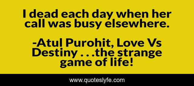 "Atul Purohit, Love Vs Destiny . . .the strange game of life! Quotes." Quoteslyfe.com, 2025. Sat. 06 Dec. 2025. <https://www.quoteslyfe.com/quote/I-dead-each-day-when-her-call-107124>.