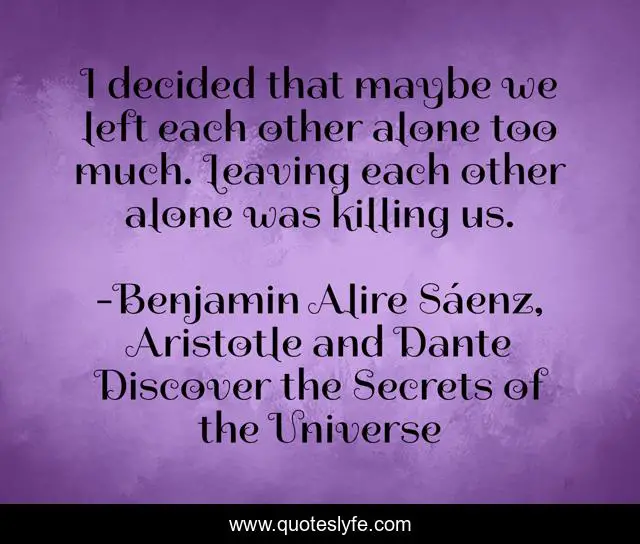 "Benjamin Alire Sáenz, Aristotle and Dante Discover the Secrets of the Universe Quotes." Quoteslyfe.com, 2025. Sun. 07 Dec. 2025. <https://www.quoteslyfe.com/quote/I-decided-that-maybe-we-left-each-138724>.