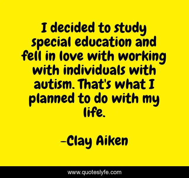This page presents the quote "I decided to study special education and fell in love with working with individuals with autism. That's what I planned to do with my life.". Author of this quote is Clay Aiken. This quote is about life, my life, love, affection,.