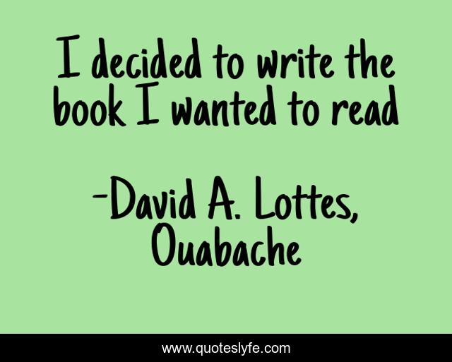"David A. Lottes, Ouabache Quotes." Quoteslyfe.com, 2025. Sun. 07 Dec. 2025. <https://www.quoteslyfe.com/quote/I-decided-to-write-the-book-I-224661>.