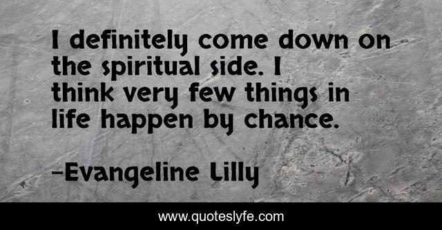 This page presents the quote "I definitely come down on the spiritual side. I think very few things in life happen by chance.". Author of this quote is Evangeline Lilly. This quote is about life, spiritual, think,.