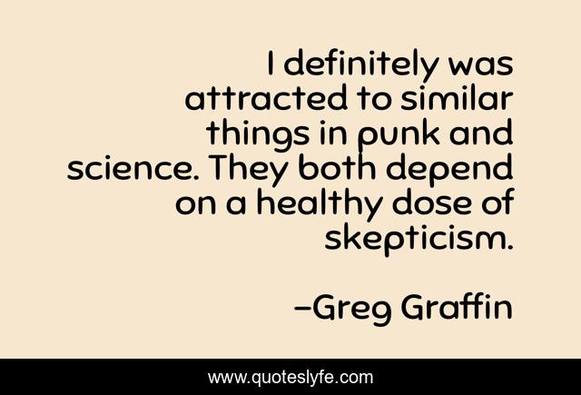 This page presents the quote "I definitely was attracted to similar things in punk and science. They both depend on a healthy dose of skepticism.". Author of this quote is Greg Graffin. This quote is about healthy, punk, depend,.