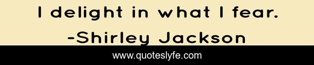 This page presents the quote "I delight in what I fear.". Author of this quote is Shirley Jackson. .