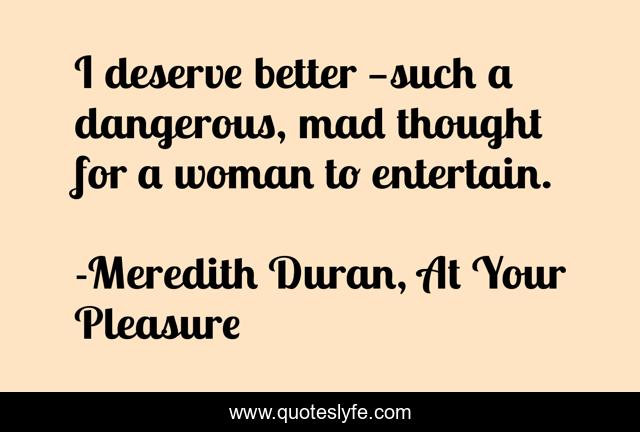 "Meredith Duran, At Your Pleasure Quotes." Quoteslyfe.com, 2025. Mon. 08 Dec. 2025. <https://www.quoteslyfe.com/quote/I-deserve-better-such-a-dangerous-mad-58588>.