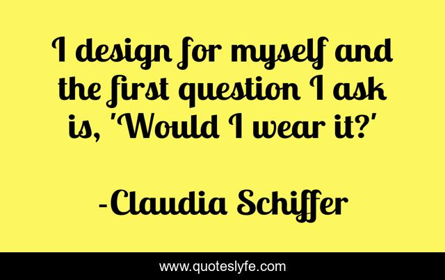 This page presents the quote "I design for myself and the first question I ask is, 'Would I wear it?'". Author of this quote is Claudia Schiffer. This quote is about myself, question, first,.