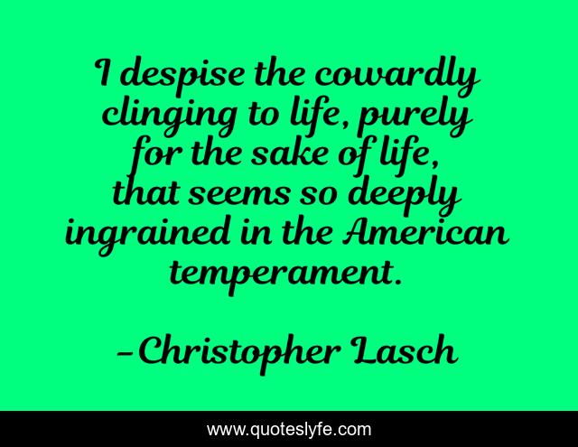 "Christopher Lasch Quotes." Quoteslyfe.com, 2025. Tue. 09 Dec. 2025. <https://www.quoteslyfe.com/quote/I-despise-the-cowardly-clinging-to-life-281011>.