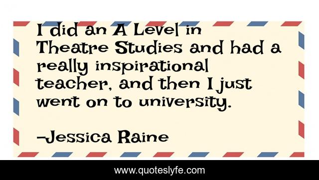 This page presents the quote "I did an A Level in Theatre Studies and had a really inspirational teacher, and then I just went on to university.". Author of this quote is Jessica Raine. This quote is about university, teacher, theatre,.