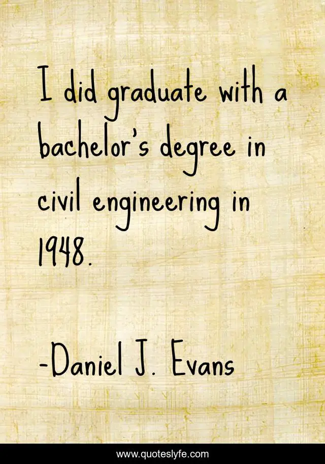 This page presents the quote "I did graduate with a bachelor's degree in civil engineering in 1948.". Author of this quote is Daniel J. Evans. This quote is about engineering, bachelor,.