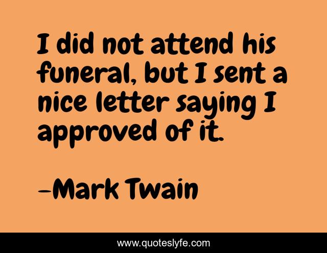 "Mark Twain Quotes." Quoteslyfe.com, 2025. Sat. 06 Dec. 2025. <https://www.quoteslyfe.com/quote/I-did-not-attend-his-funeral-but-5364>.