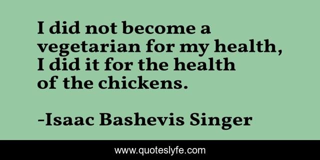 This page presents the quote "I did not become a vegetarian for my health, I did it for the health of the chickens.". Author of this quote is Isaac Bashevis Singer. This quote is about environmental, vegetarian,.