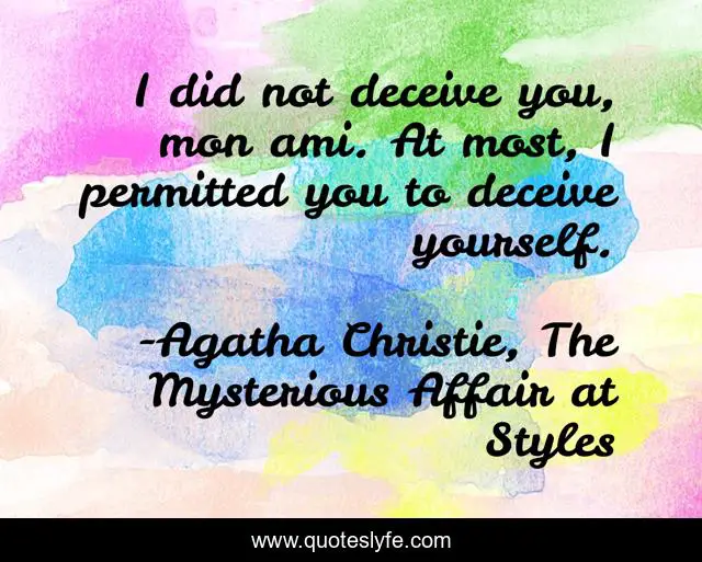 This page presents the quote "I did not deceive you, mon ami. At most, I permitted you to deceive yourself.". Author of this quote is Agatha Christie, The Mysterious Affair at Styles. .