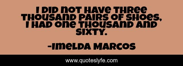 This page presents the quote "I did not have three thousand pairs of shoes, I had one thousand and sixty.". Author of this quote is Imelda Marcos. This quote is about pairs, shoes, three,.