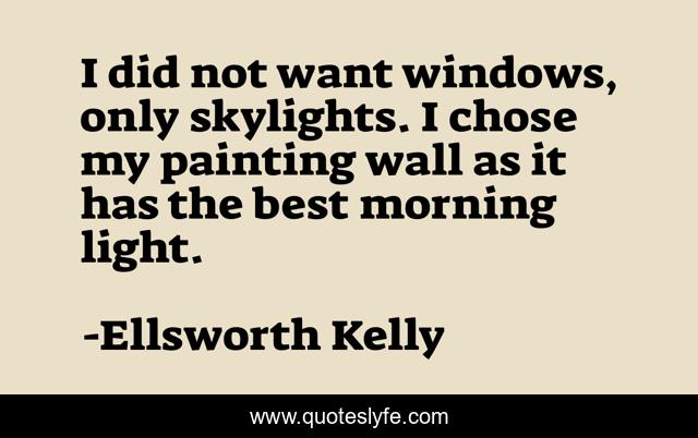 This page presents the quote "I did not want windows, only skylights. I chose my painting wall as it has the best morning light.". Author of this quote is Ellsworth Kelly. This quote is about light, painting, best,.