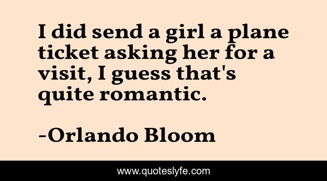 This page presents the quote "I did send a girl a plane ticket asking her for a visit, I guess that's quite romantic.". Author of this quote is Orlando Bloom. This quote is about girl, asking, her,.