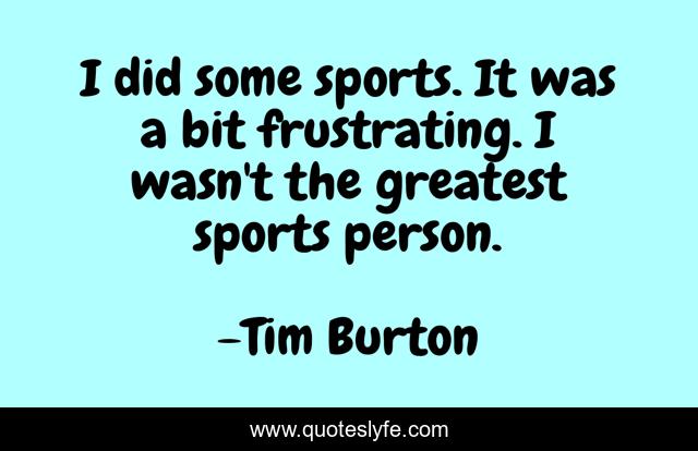 This page presents the quote "I did some sports. It was a bit frustrating. I wasn't the greatest sports person.". Author of this quote is Tim Burton. This quote is about person, greatest,.