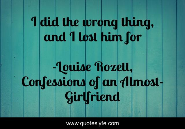 This page presents the quote "I did the wrong thing, and I lost him for". Author of this quote is Louise Rozett, Confessions of an Almost-Girlfriend. This quote is about right-and-wrong, responsibility, morality,.